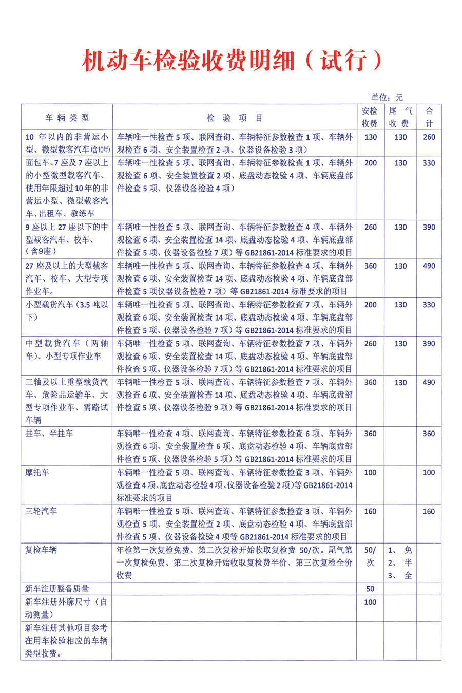 拓展内容:车检收费