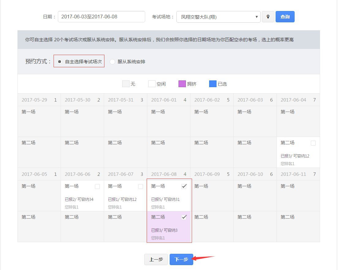 学员优先预约时,可以选择具有空余优先预约名额的考试场次进行预约。只要预约申请成功且学员不存在其他法规规定的不符合考试预约情形,就安排考试。