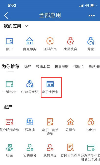 1、打开APP,找到“电子社保卡”(以建行APP举例)